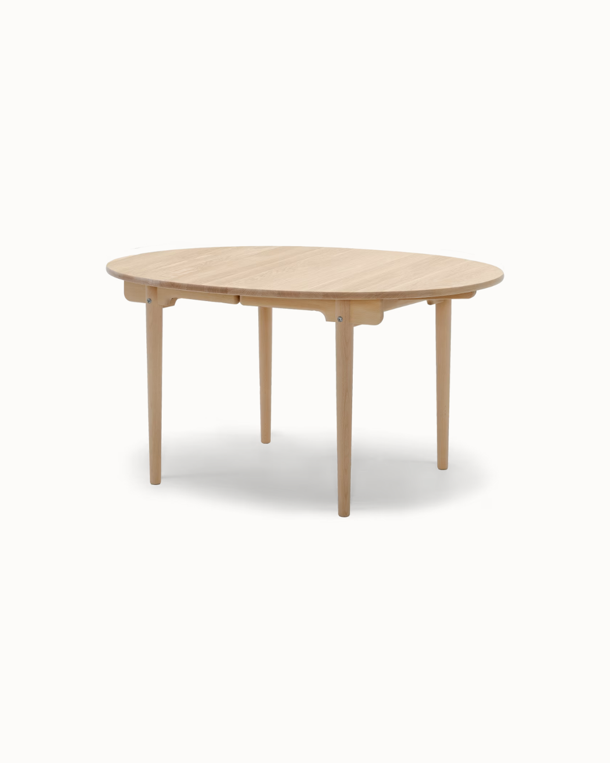 The elliptical tabletop is sleek and smooth. It rests on tapered legs that reflect simple, refined style. The table seats four to six guests comfortably. Additionally, it can extend for bigger gatherings. Therefore, it fits both everyday meals and special events.