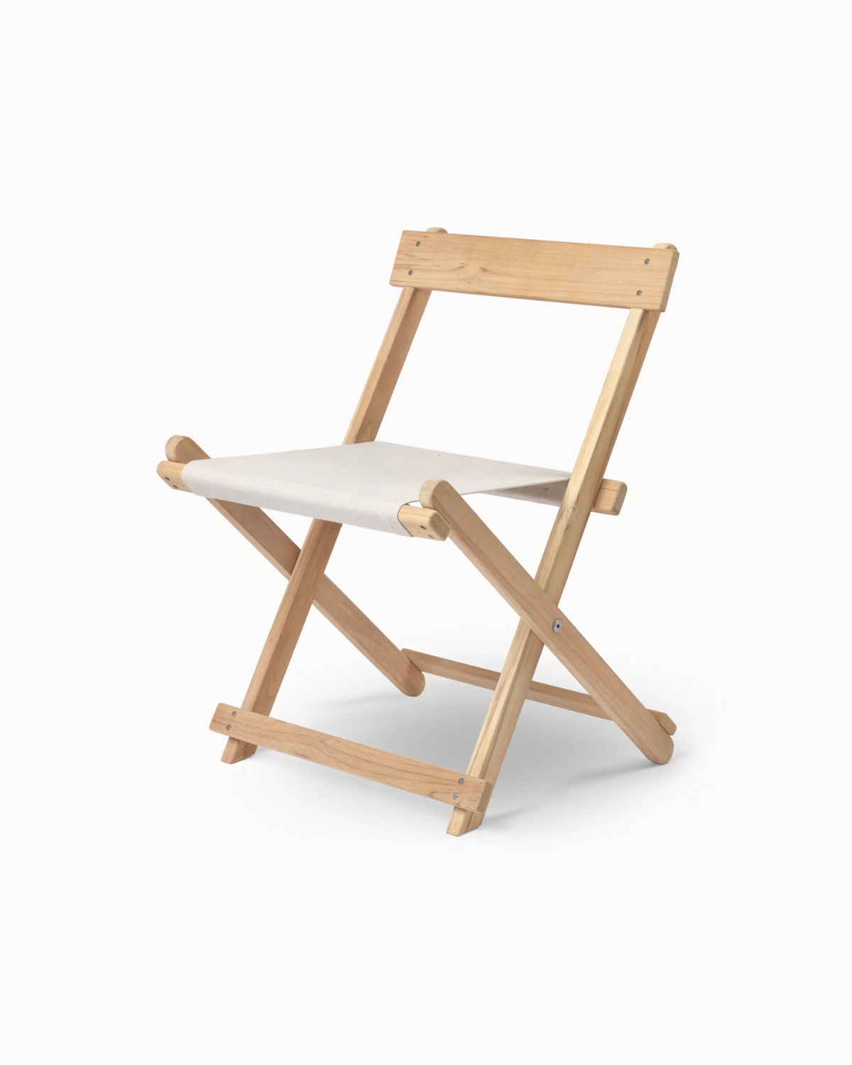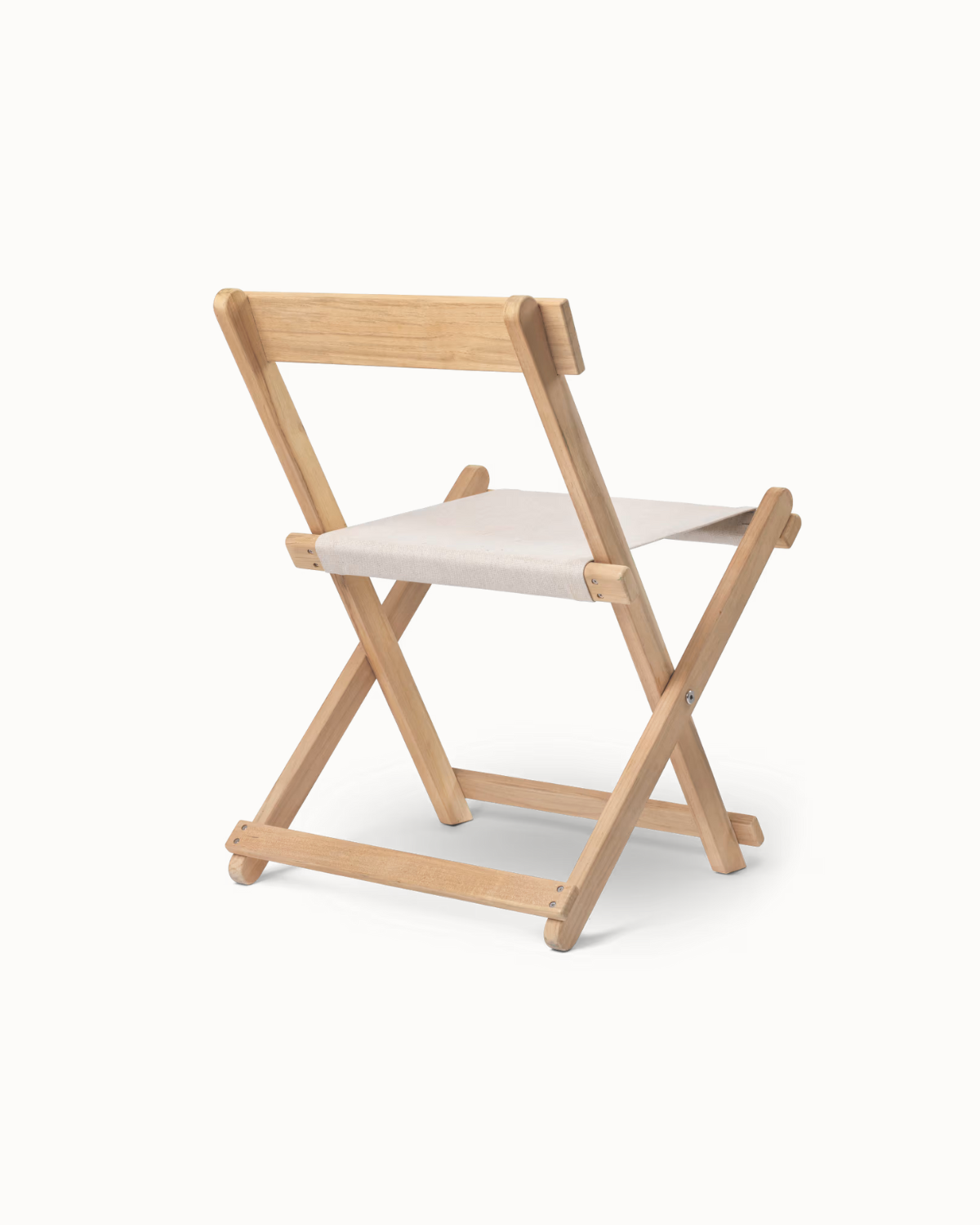 Vetrikā is a folding chair for outdoor dining that blends craftsmanship, comfort, and nature. Its clean slatted design and refined teak frame bring elegance to any open-air space.
